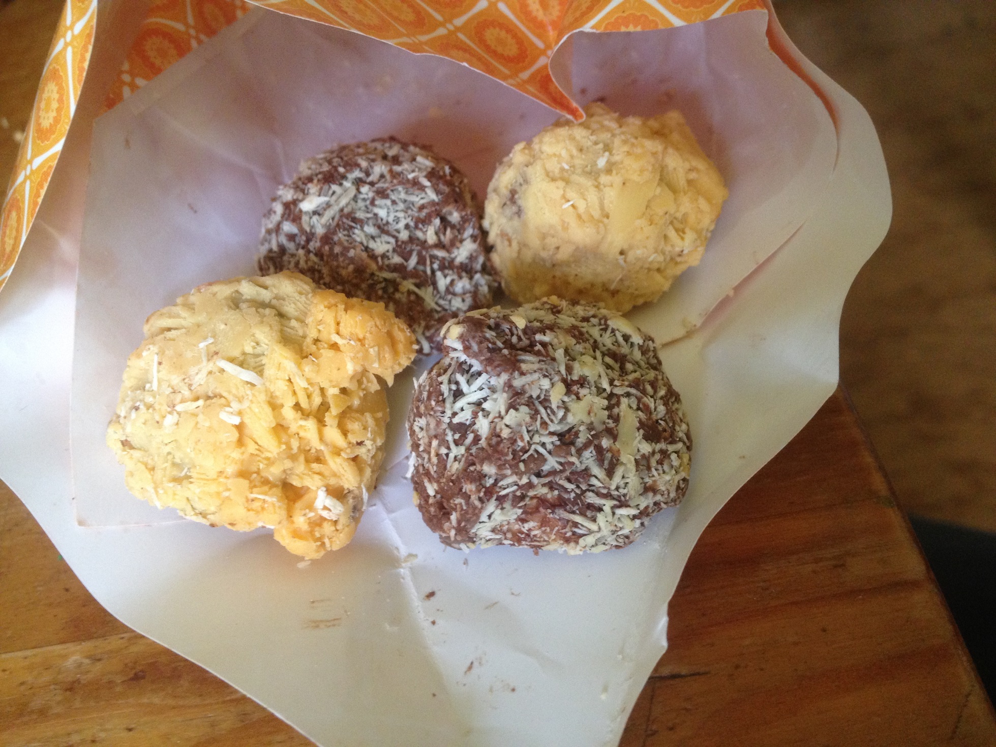 Finsmakeriets handrullade chokladtryfflar med kokos och passionfrukt var både söta och smakrika båda sorterna. De får båda ett godkänt betyg men kunde kanske varit lite saftigare.