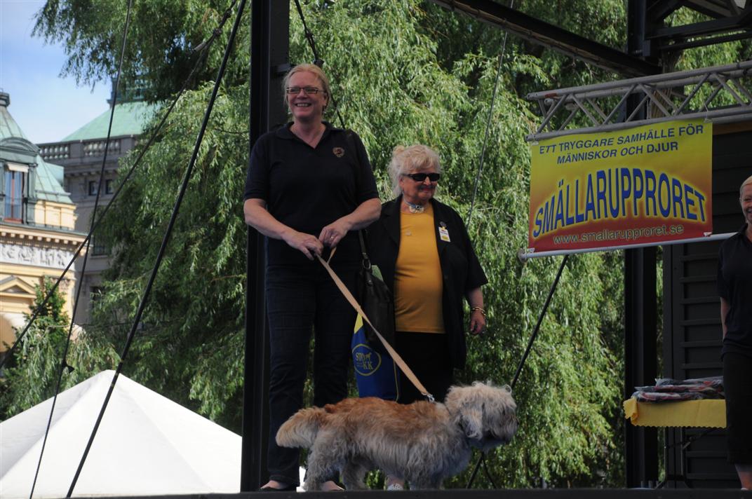 Det var Stockholms Hunddag i Kungsträdgården idag. Det var fullt med hundar av olika storlekar och raser. Det fanns några specialklubbar som visade upp sina hundraser. Sen fanns det såklart stånd med olika föreningar och försäljning eller reklam för tex olika hundmat eller tillbehör. Det fanns även en monter som där s.k. hundexperter mot en låg kostnad, 100kr., kunde gå igenom folks hundar angående kondition och hälsa. Sedan fick de ett diplom och rosett och ett slags första hjälpen-kit.