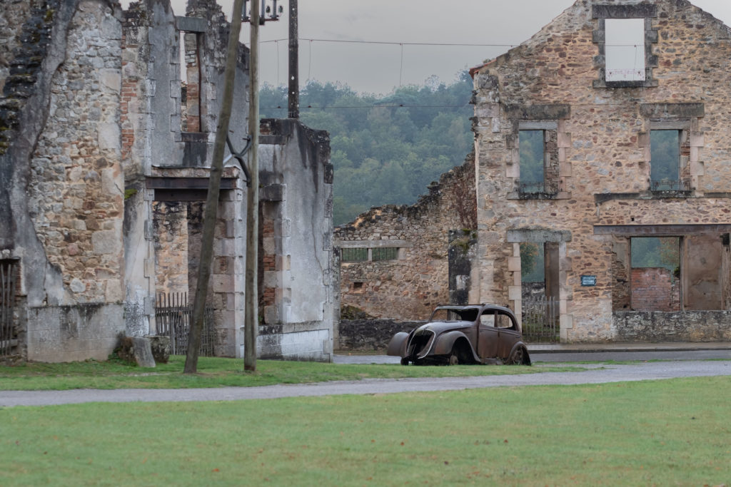 Om ni har Frankrike på semesterkartan så finns det all anledning att reservera en tur till Oradour-sur-Glane, en ort öster om Bordeaux. I Oradour stannade tiden den 10 juni 1944 när tyska SS-trupper på väg mot striderna i Normandie genomförde en massaker på byns befolkning. Orten är sedan dess orörd och ett monument över krigets och människans vansinne. Den nya byn byggdes efter kriget upp på andra sidan landsvägen.