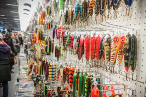Det står väldigt klart att det finns fler varianter av tillbehör än det finns utövare. Hyllorna som tycks sträcka sig längs med hela den stora mässhallen bångnar av drag, spön och tillbehör. Det finns nog av produkter för att möta den mest kräsne sportfiskares förväntningar.