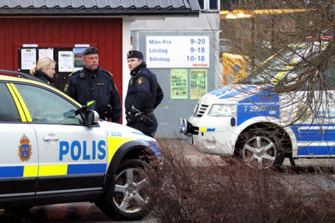 Det skall vara en man som rånat butiken genom att hota personalen med knuffar och slag, mannen skall sedan ha lämnat platsen i en röd bil. Mannen skall ha burit svarta ”grövre” glasögon och en svart väst.
